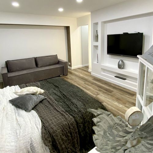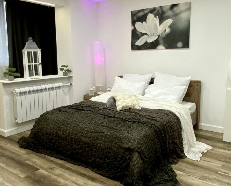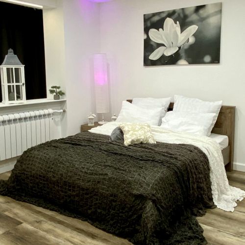 Апартаменты расположились в пятиэтажном жилом доме на улице Генерала Карбышева. В распоряжении гостей однокомнатный 2-местный номер с современным интерьером. Апартаменты оснащены кухней